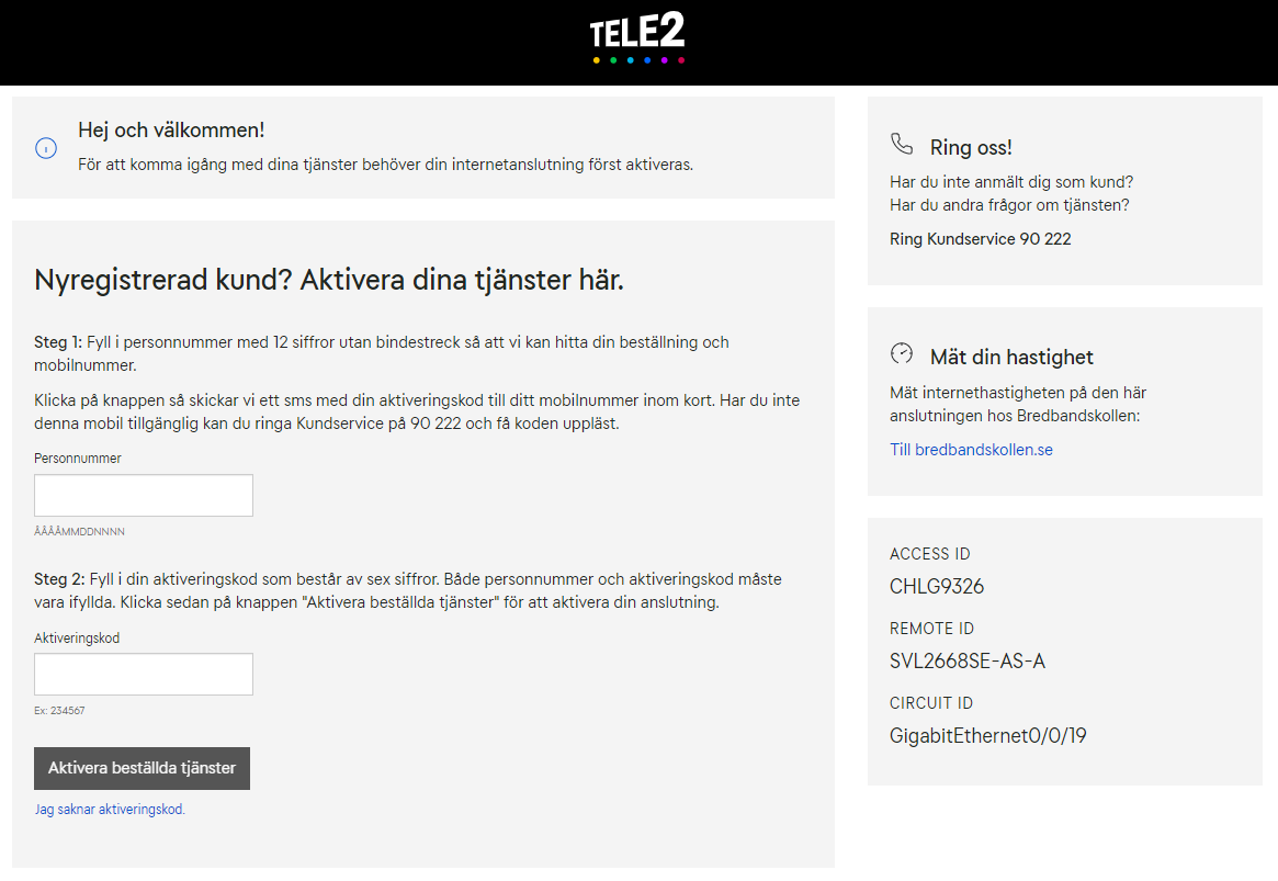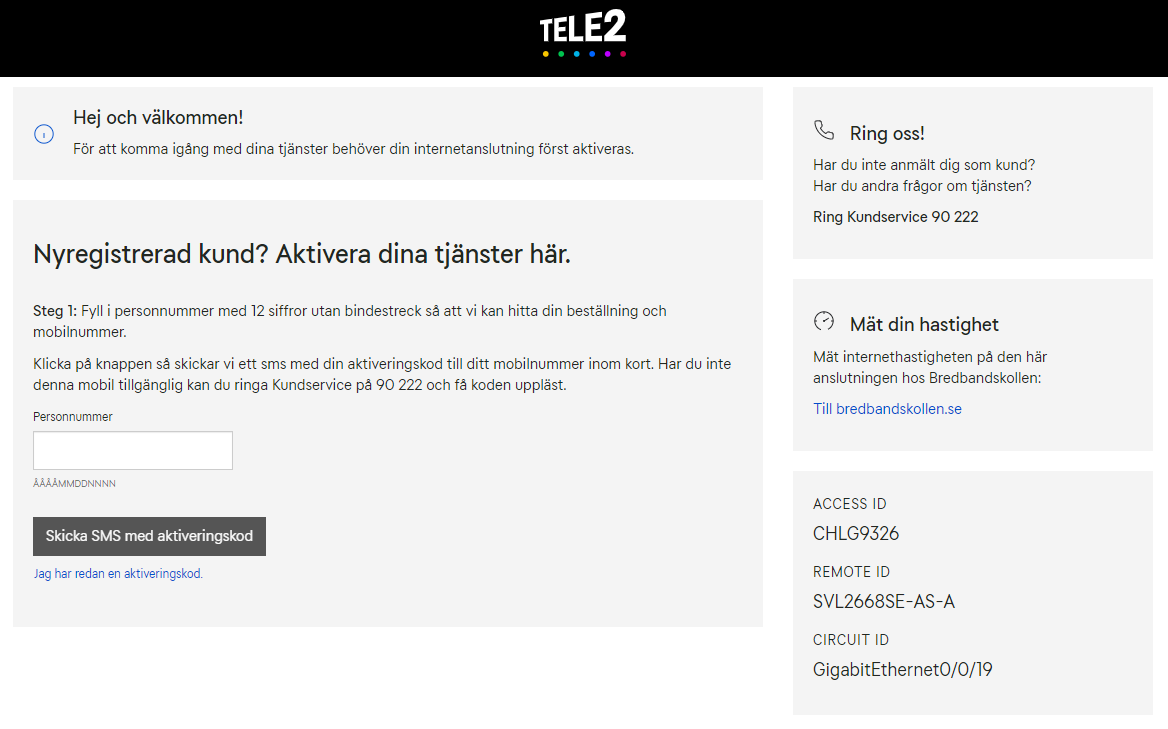 Du får ett SMS med din aktiveringskod. Skriv in koden i aktiveringsportalen. Inom 15 minuter är ditt bredband igång.