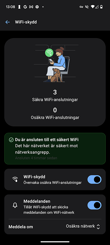 1. Gå in på Bedrägeriskydd och sedan WiFi-skydd.